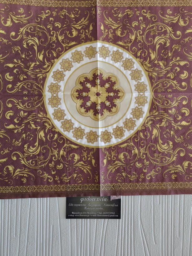 Χαρτοπετσέτα για decoupage 33x33cm στοιχείο μπαρόκ μπορντό , 1τμχ.