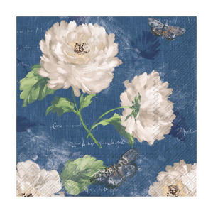 Χαρτοπετσέτα decoupage, 1 τεμ, Λευκά λουλούδια σε μπλε φόντο quantity