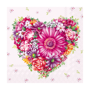 Χαρτοπετσέτα decoupage, 1 τεμ, Καρδιά από λουλούδια