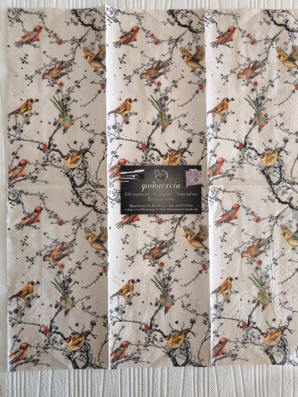 Χαρτοπετσέτα για decoupage 33x40cm Πουλάκια στα κλαδάκια , 1τμχ.