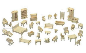 Ξύλινες 3d μινιατούρες έπιπλα 37χ23εκ. 34τεμάχια