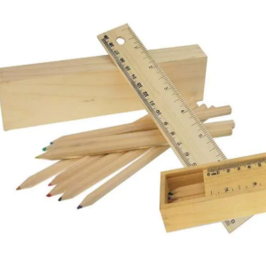 Ξύλινη κασετίνα 20.5x4x3cm χάρακας και σετ 8 ξυλομπογιές