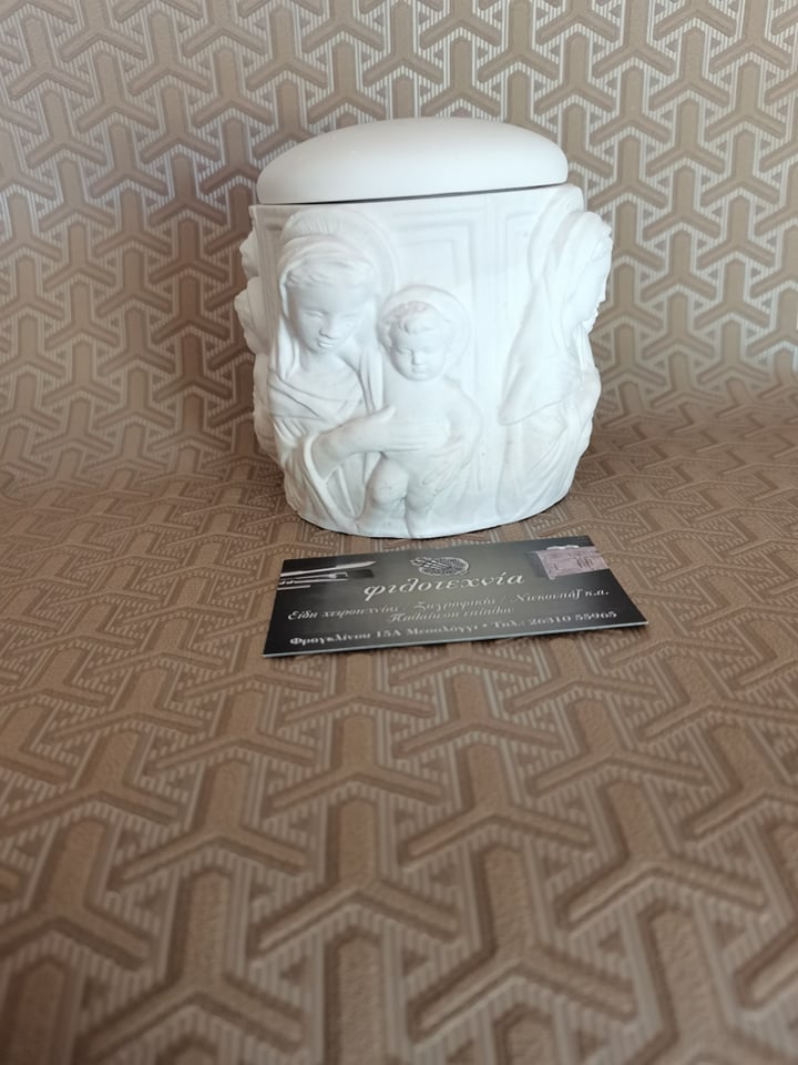 Πολυεστερικό κουτί με καπάκι και την Παναγία με τον Χριστό περιμετρικά 11χ10εκ.