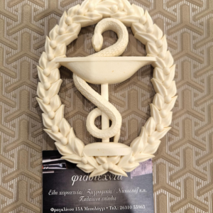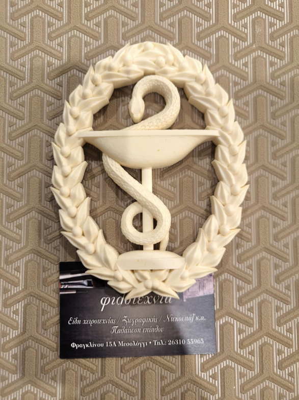 Στοιχείο ελαστικής ρητίνης το φαρμακευτικό σύμβολο του Κηρυκείου του Ασκληπιού 15χ11εκ.