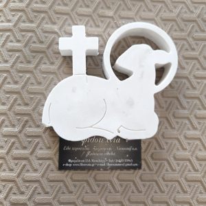 Πολυεστερικό αντικείμενο αμνός με σταυρό 12χ11εκ.