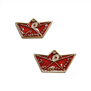 Γούρι μεταλλικό καραβάκι -κόκκινο σμάλτο 2×3,5cm